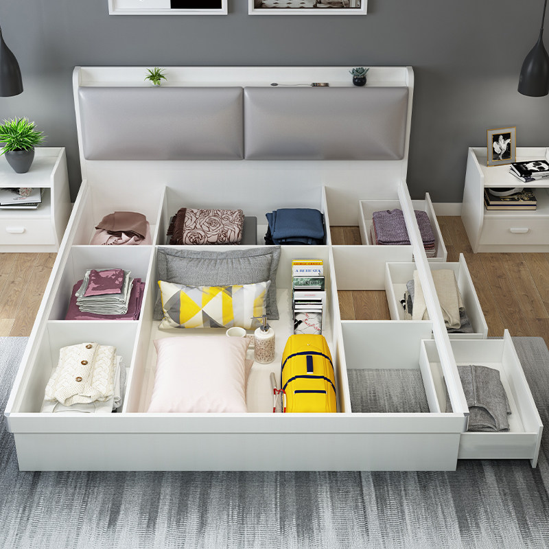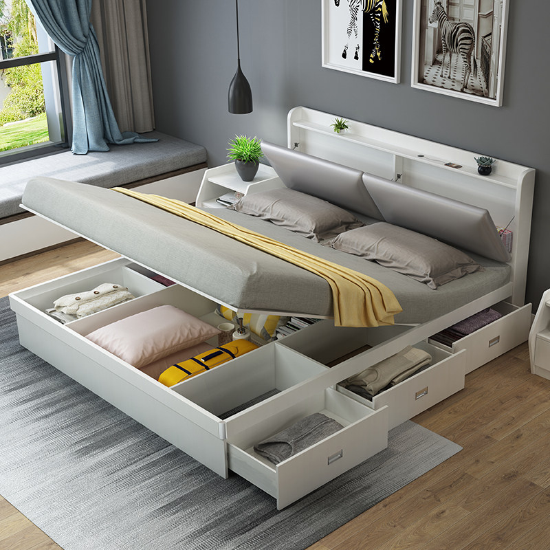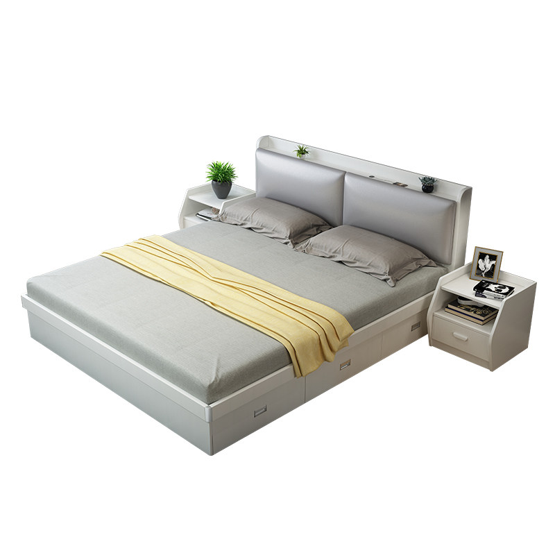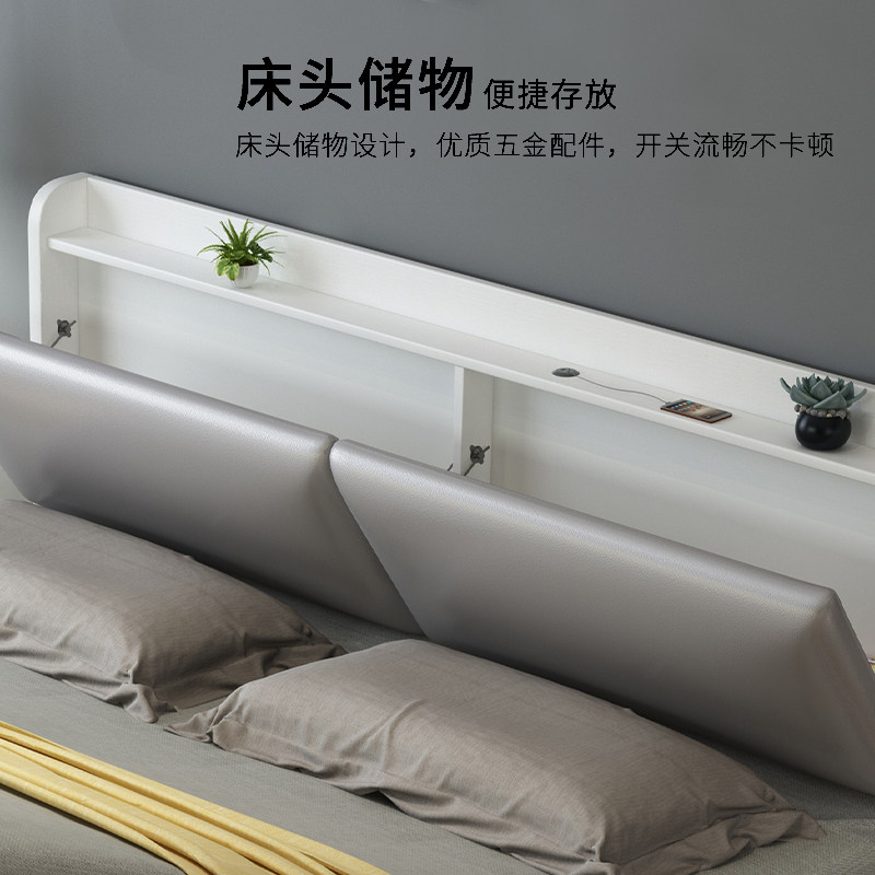 Modern minimalist economic panel double bed 1 8 m bedroom 1 5 m small apartment soft high Box storage bed