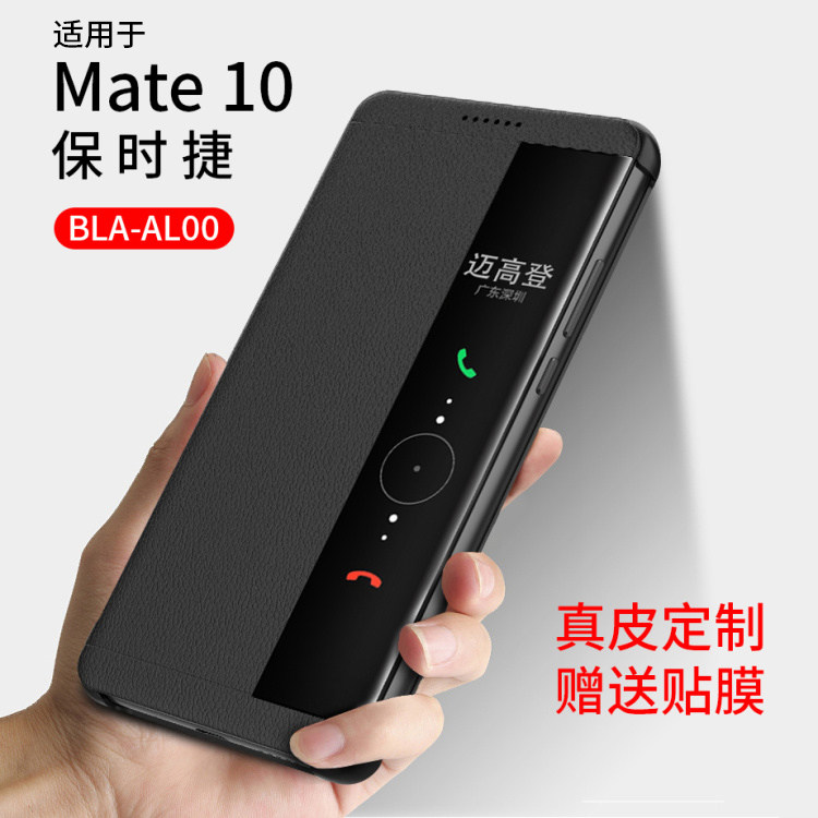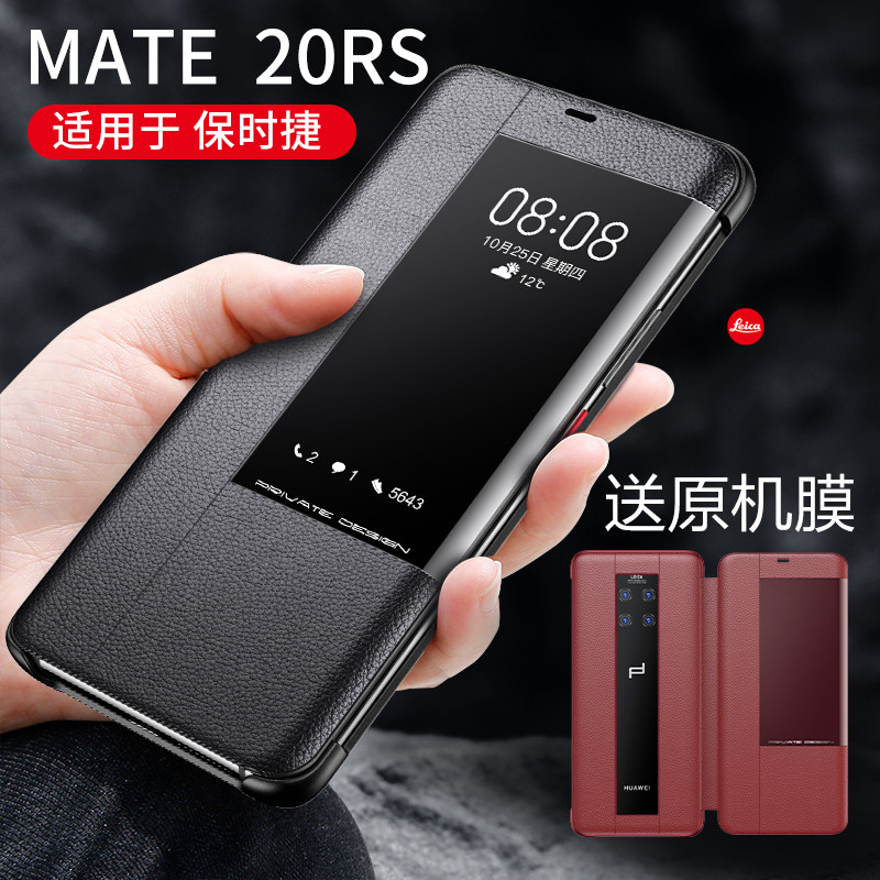 Suitable for Huawei Porsche mate10 mobile phone protection shell mateRS limited edition genuine leather mate20rs protective sleeve intelligent Windows full-pack clamshell type bla neo10r