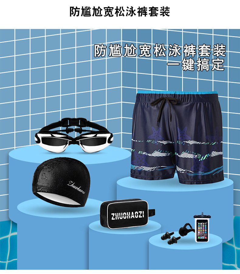 Swimming pants men's anti-embarrassment flat angle loose speed dry large size with fattening spa swimming pants suit seaside holiday beach pants