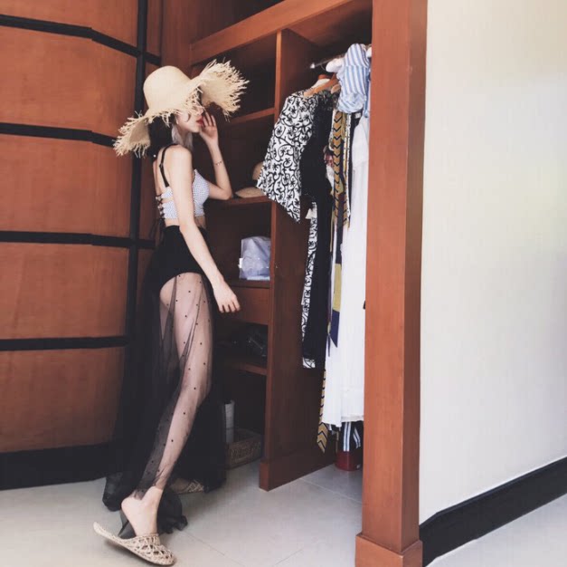 inS new net red Korean sexy bikini three-piece split swimsuit women's hot spring gathering super thin