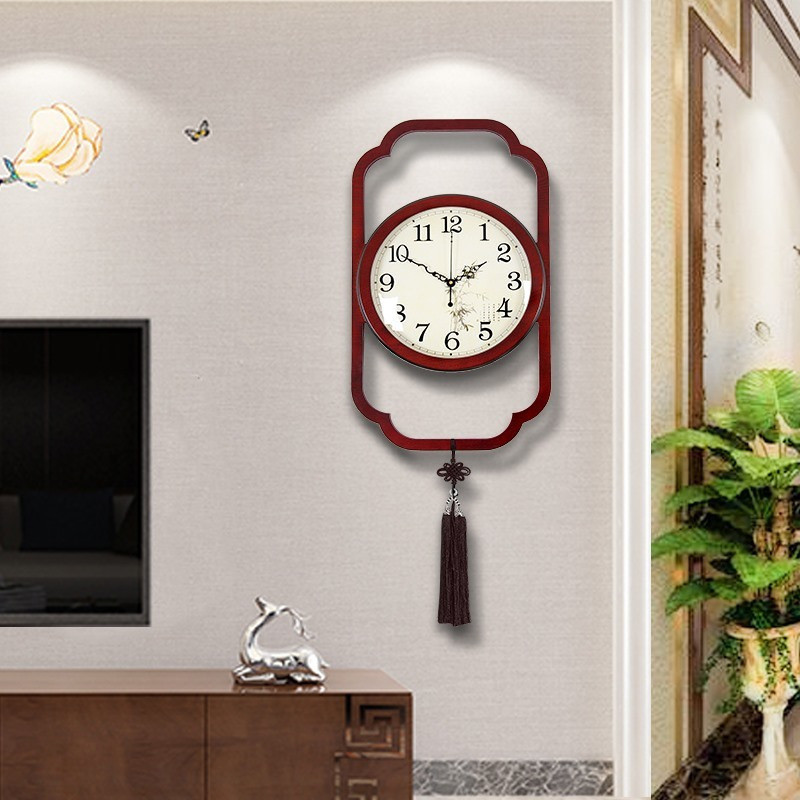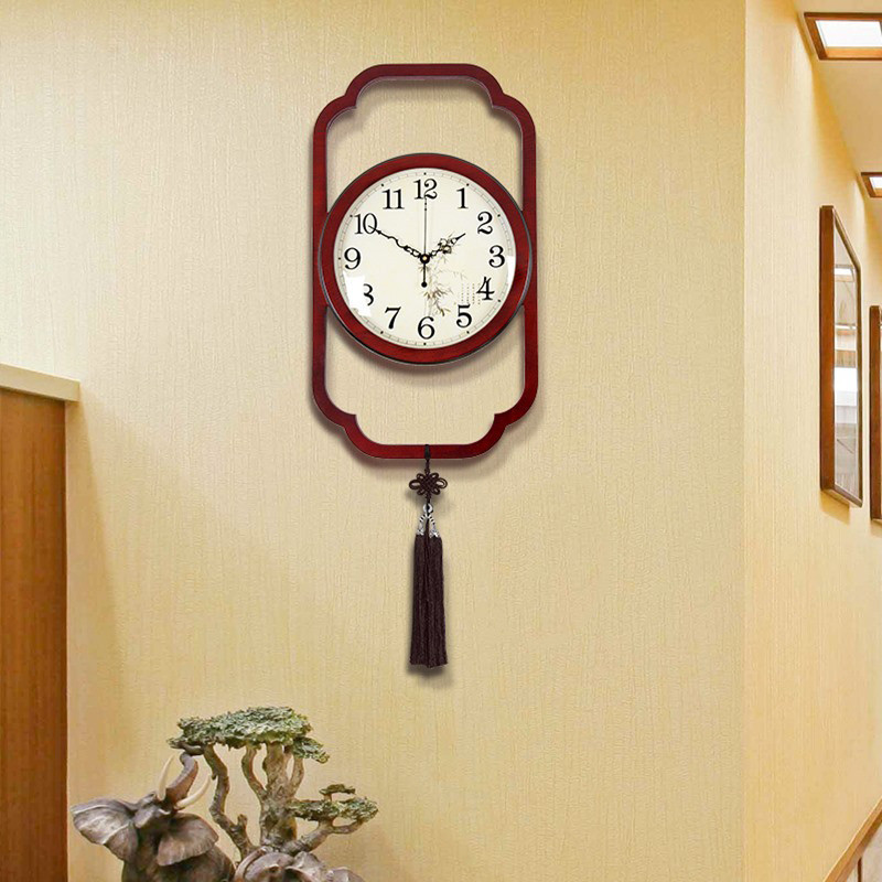 Kou Anna new Chinese wall clock wooden clock Home living room Chinese style watch simple decoration silent creativity