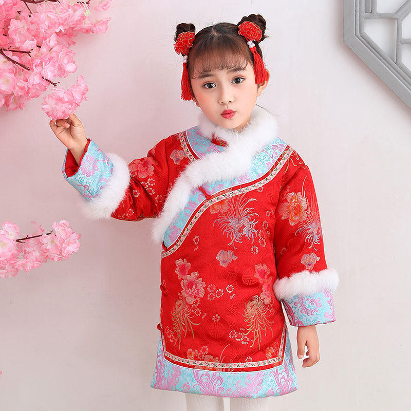 Middle China Wind children's qipao girl Han clothes foreign dress baby Dang dress Gagger skirt baby to serve New Year's clothes