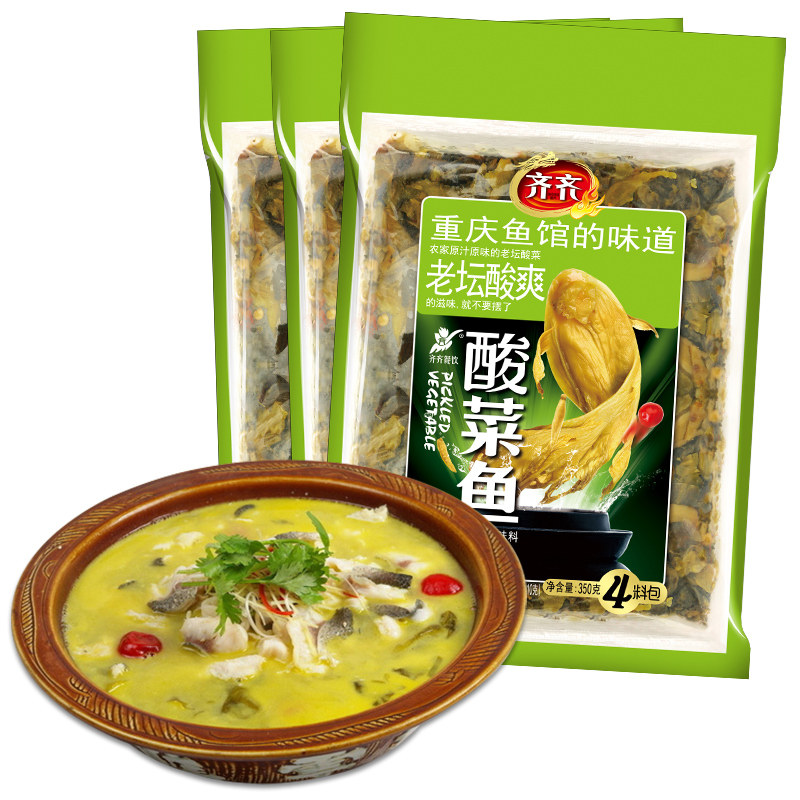 Authentic Chongqing Qi Qi Sichuan flavor Laotan sour sauerkraut fish seasoning 350g*3 bags