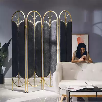 Mingzhe soundproof Hollow mobile hotel Hall wrought iron large screen living room compartment light luxury fabric soft folding screen