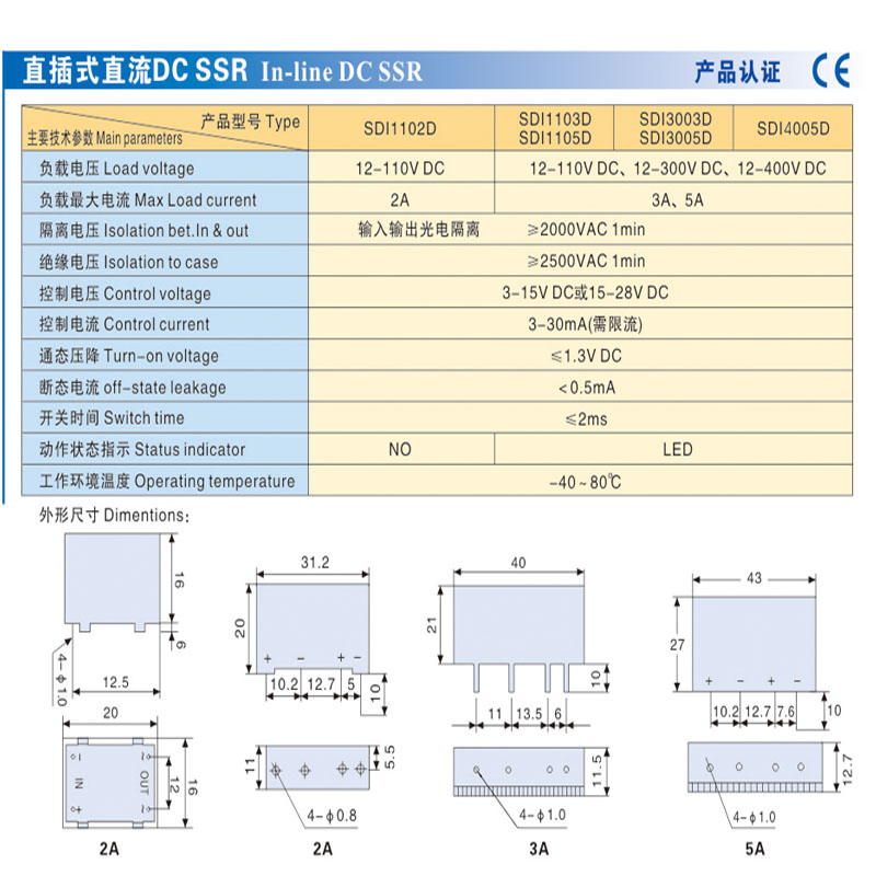 Gooter GOLD single-phase small PCB in-line solid state relay SDI1103D DC controlled DC 3A 110V
