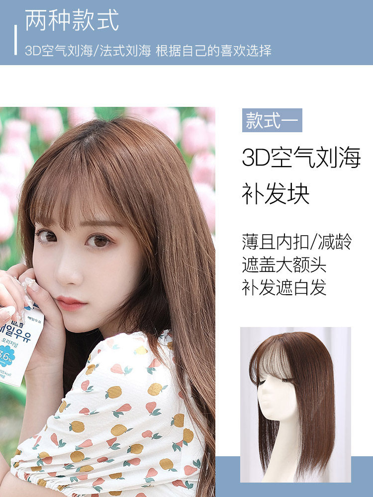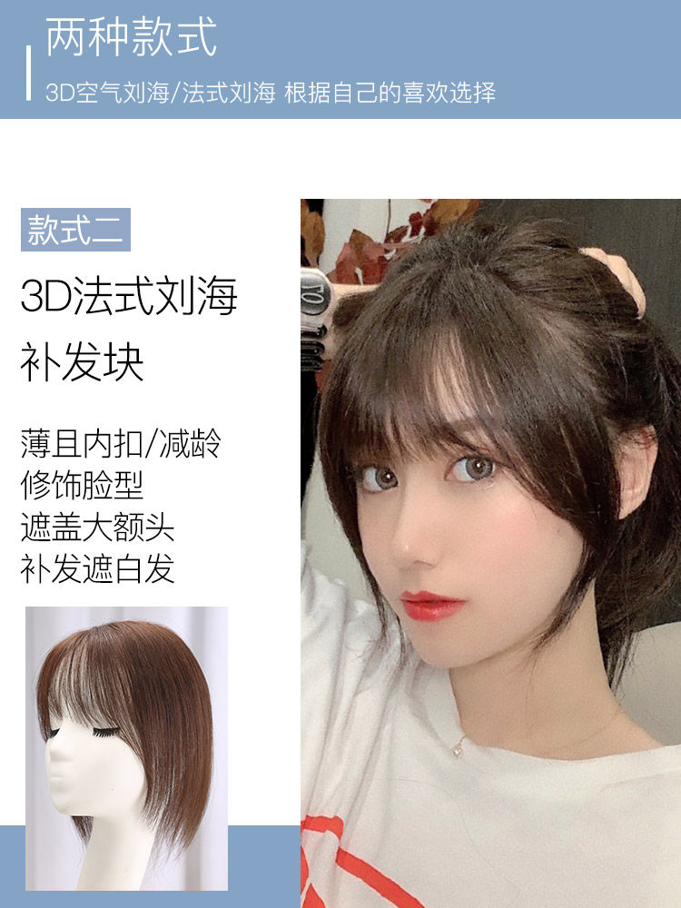 Net red cover white hair French Bangs wigs Female real hair Short hair Top hair replacement block Delivery needle Incognito air Bangs