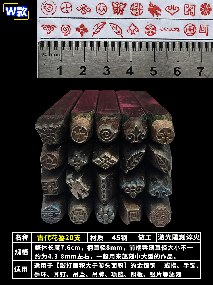 Chisel engraved chisel flower tool chisel engraved hairpin ancient hand chisel engraved gold and silver ornaments chisel engraving knife table rubber plate engraved copper pattern hammer