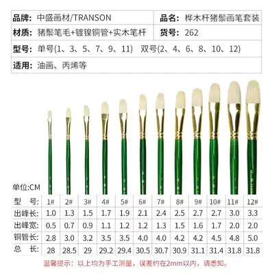 Zhongsheng painting material Bristle round flat head Oil painting pen Acrylic pen Watercolor pen set for examination F262