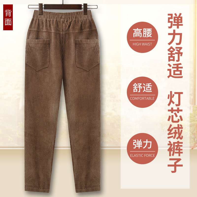 Mom pants wear trousers cordular pants in old old coarse coat strawsuits high waist small feet Halen pants