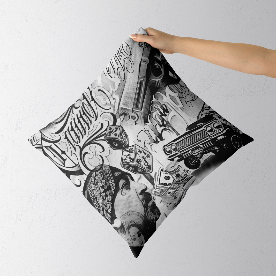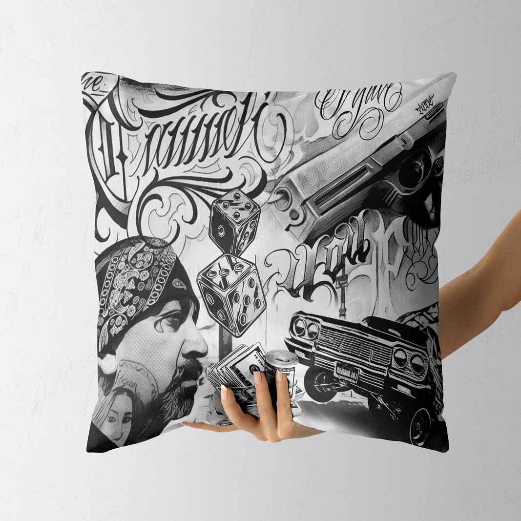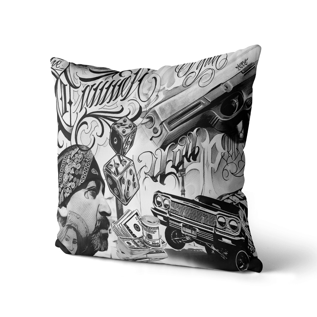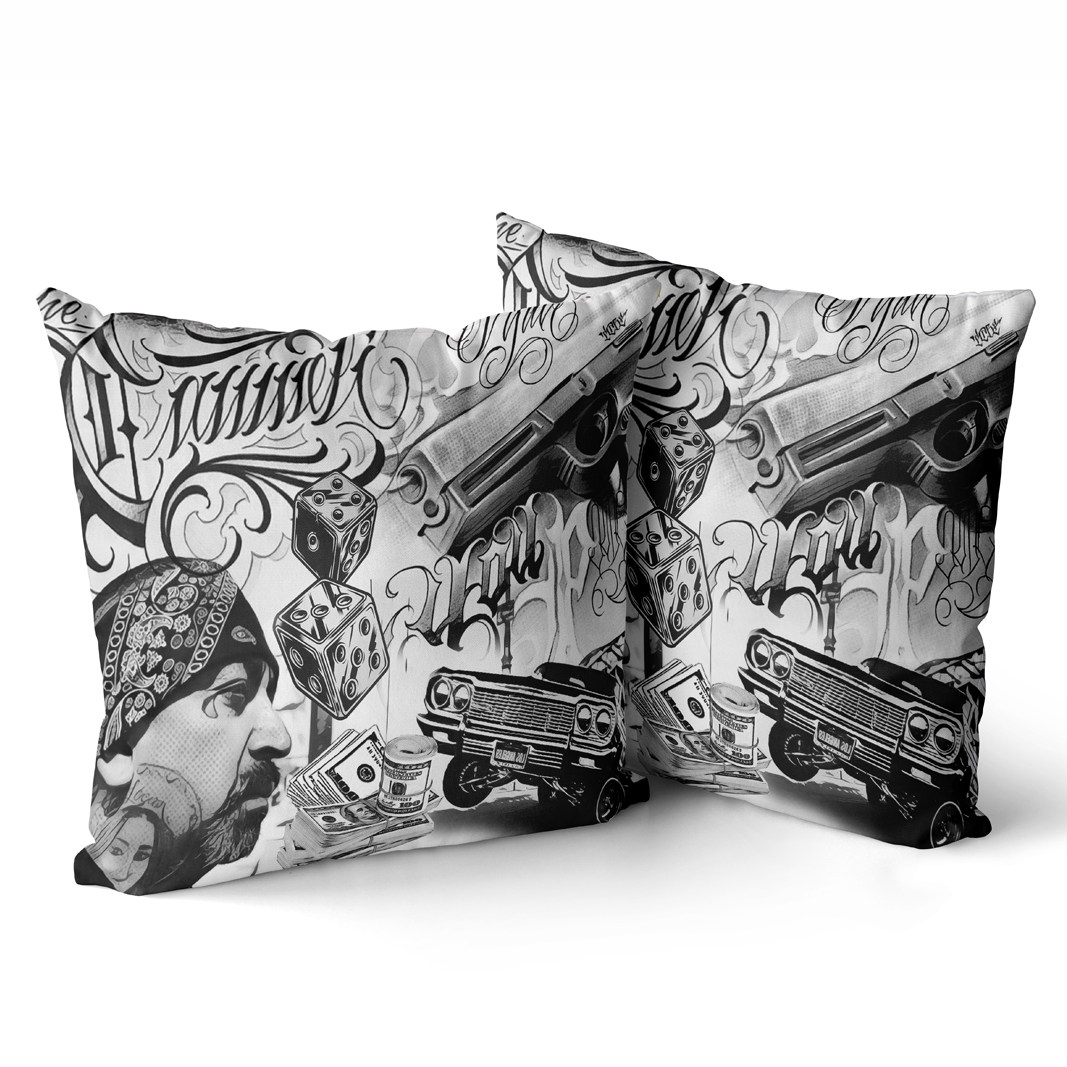 Low Rider West Coast Chicano Bandit Hard Core Hip Hop Rap Rap Dice Flop Body Print Holding Pillow