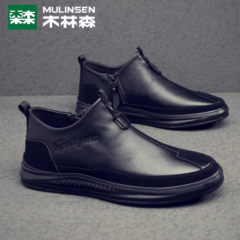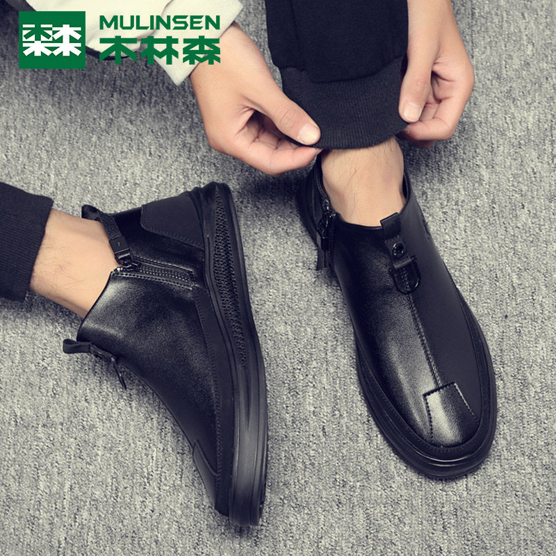 Wood Linson Official Flagship Store Men's Shoes Autumn Winter Inn High Cylinder Shoes Men Casual Leather Shoes Men Youth Black Sets Foot