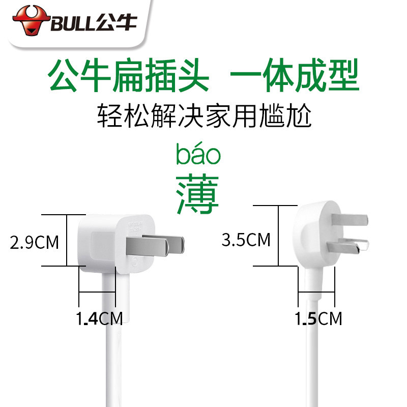 Bull ultra-thin plug flat two-leg gap socket gap plug-in short line mini small plug board extension cord