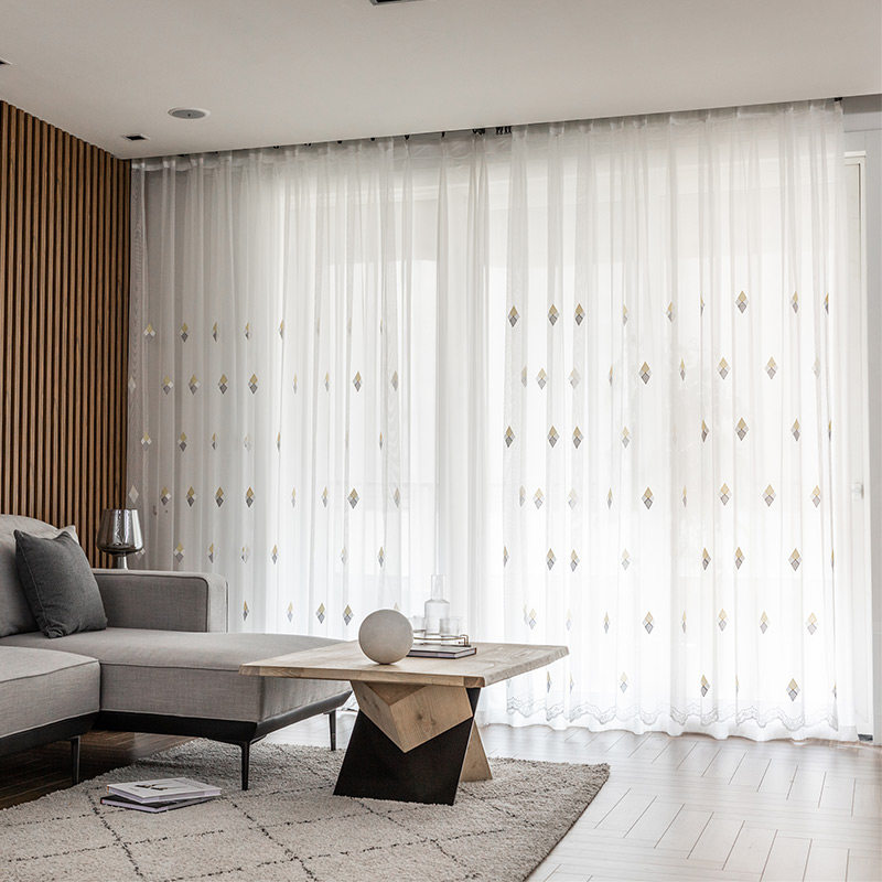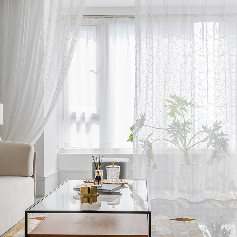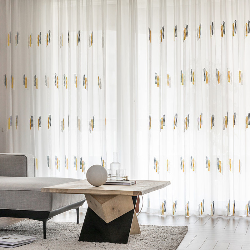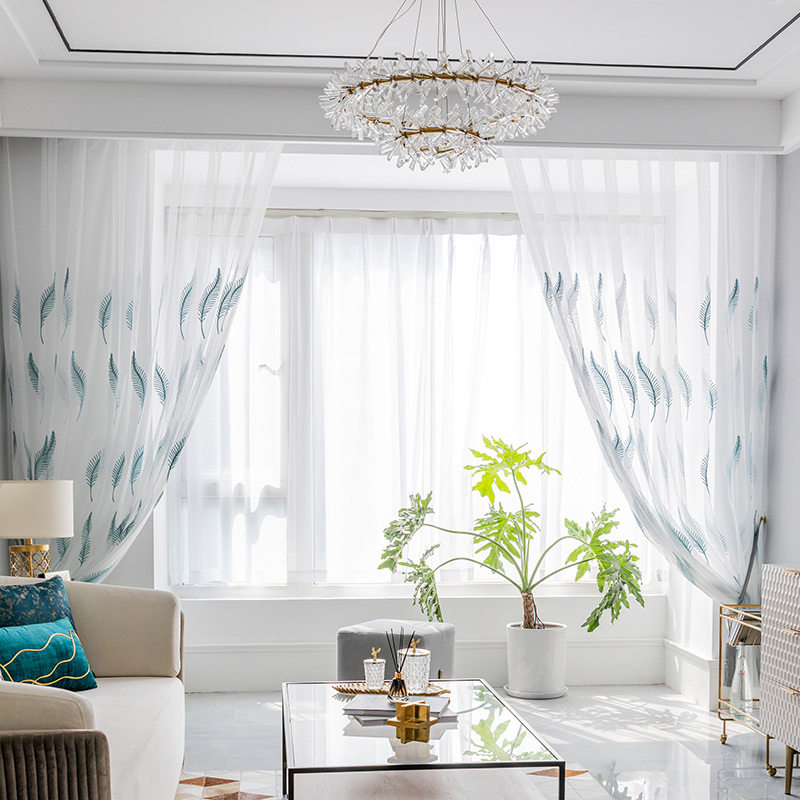 Nordic Modern Ins yarn curtain finished embroidered European-style yarn curtain Living room Bedroom Floating Window Curtain Pure color Balcony White Yarn