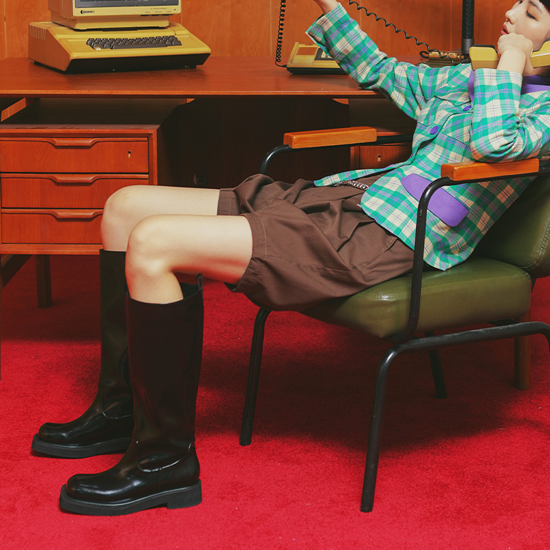 littlegood new British style knight boots women's autumn and winter mid-tube square head Martin boots motorcycle boots college style