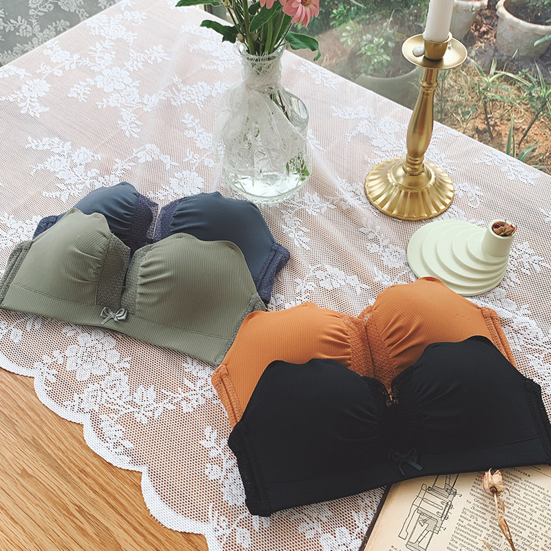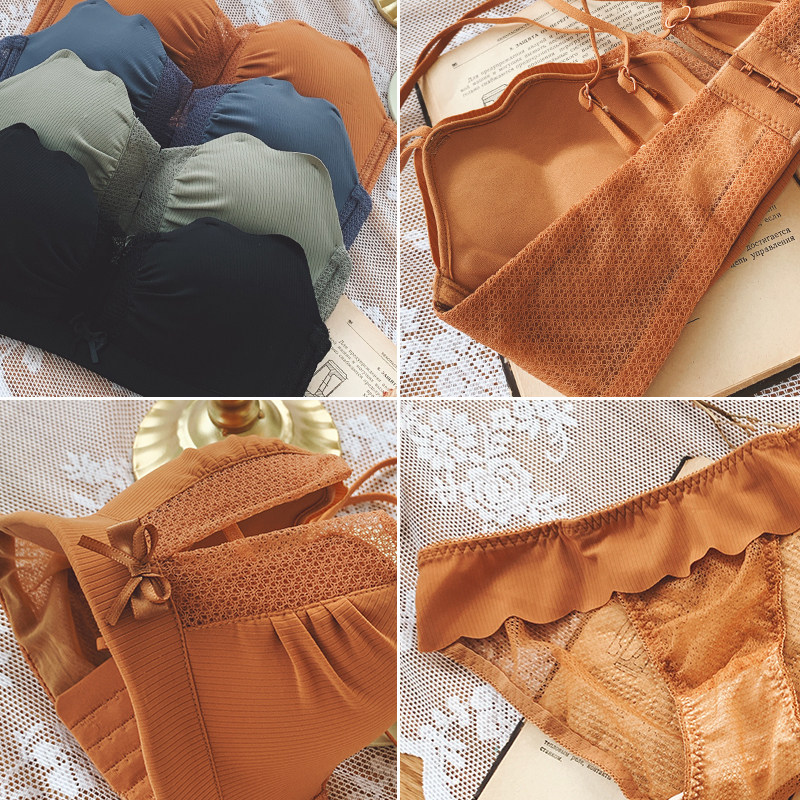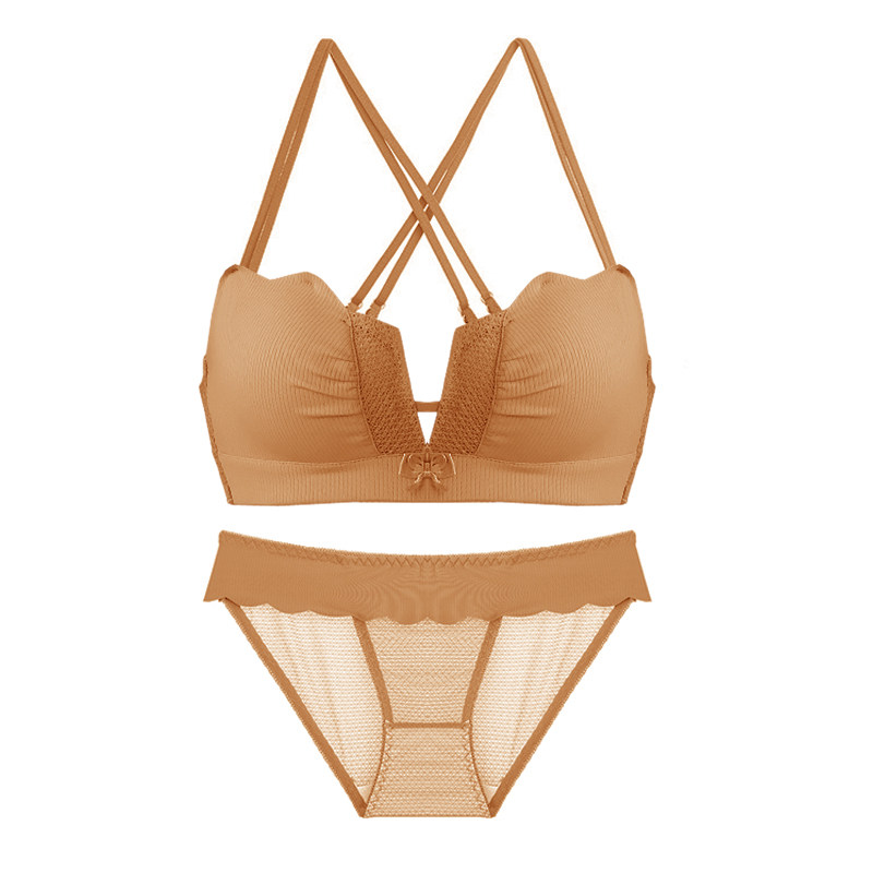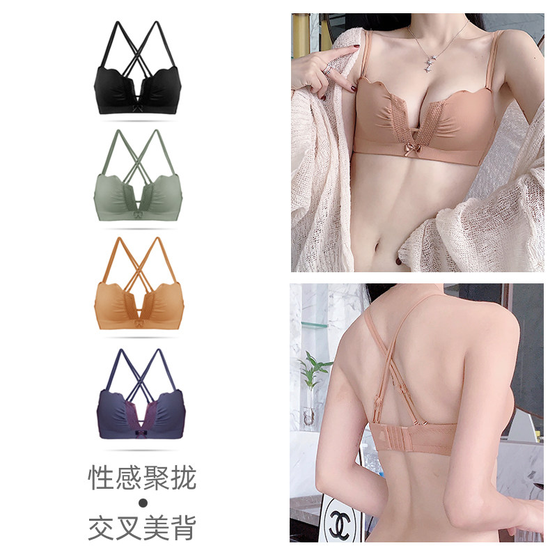 Sakura season sexy cross beautiful backless backless girl bra thin section without steel ring small chest gathered breast underwear set