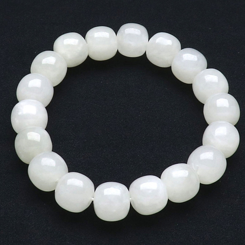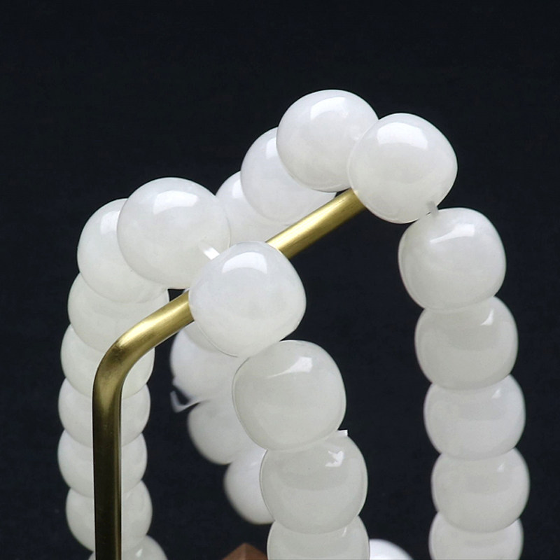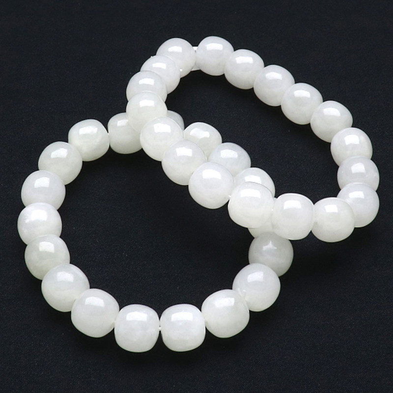 Natural Xinjiang Hetian white jade bracelet round bead jade string oil embellish delicate white hand string men and women style belt certificate