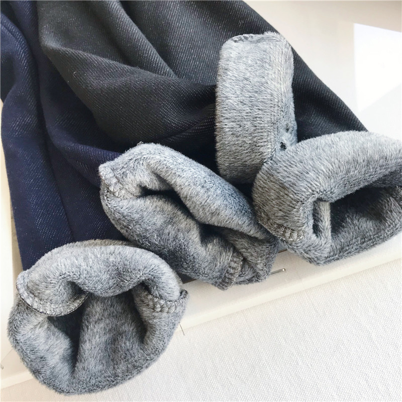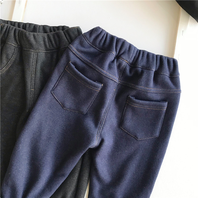 2022 Autumn and Winter Boys and Girls All-match Slim Thin Velvet Stretch Jeans Children's Knitted Imitation Denim Casual Pants
