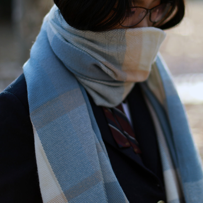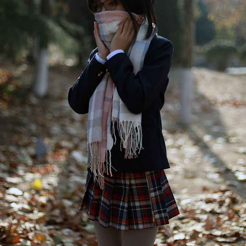 2 pieces of winter grid thickened scarf JK school style scarf imitation cashmere shawl