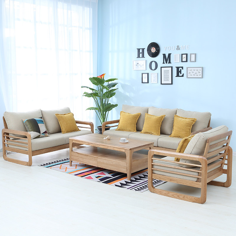Nordic sofa combination 123 straight living room modern minimalist expression wooden plus fabric sofa solid wood latex sofa - Taobao