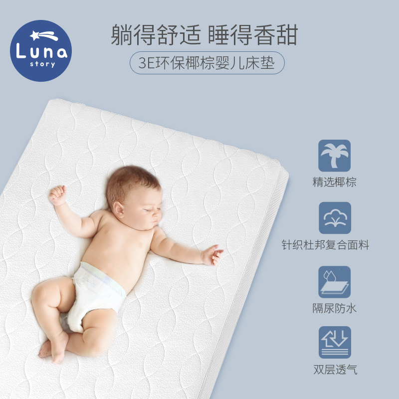 (Live) lunastory natural coconut palm crib brown pad baby mattress latex 100*56*7cm