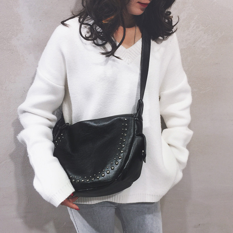 Upper New Big Bag Girls Pack New 2021 Cool Teenage Girl Rivet Bag Large Capacity Class Bag Casual Single Shoulder Diagonal Satchel Bag