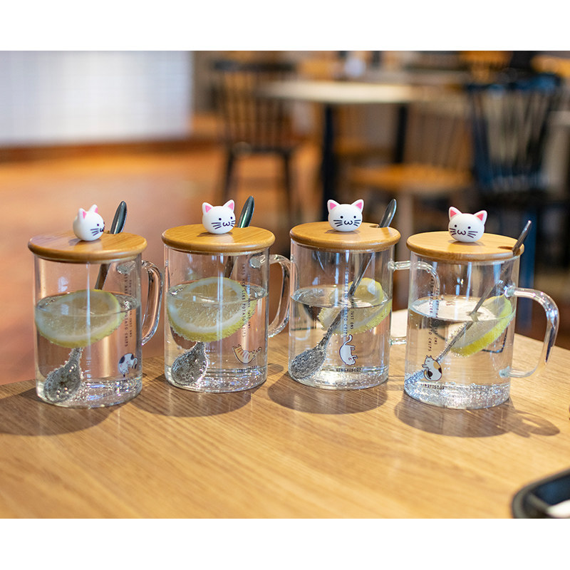 Becar plume minimalist cat mug cup home glass cup with strap cover spoon office girl heat resistant water glass