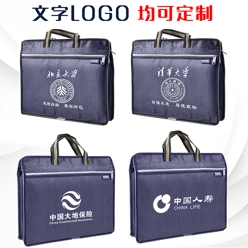 Large capacity canvas bag Oxford cloth document bag Green tote bag information conference briefcase A4 handbag large thickened multi-layer men's and women's office bag business conference bag custom printed LOGO
