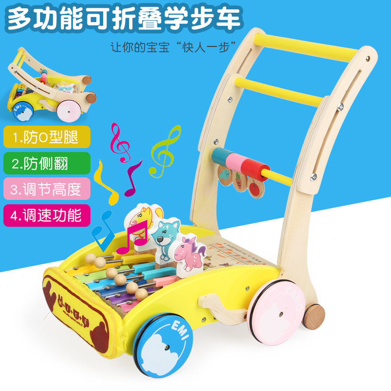 Wooden baby walker trolley baby walking children walking help children adjustable speed boys and girls Anti-O legs
