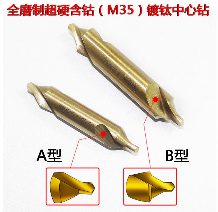 HSS high speed steel Co-titanium plated full grinding spiral center drill AB type 1 2 3 5 4 5 6 Centering drill M35