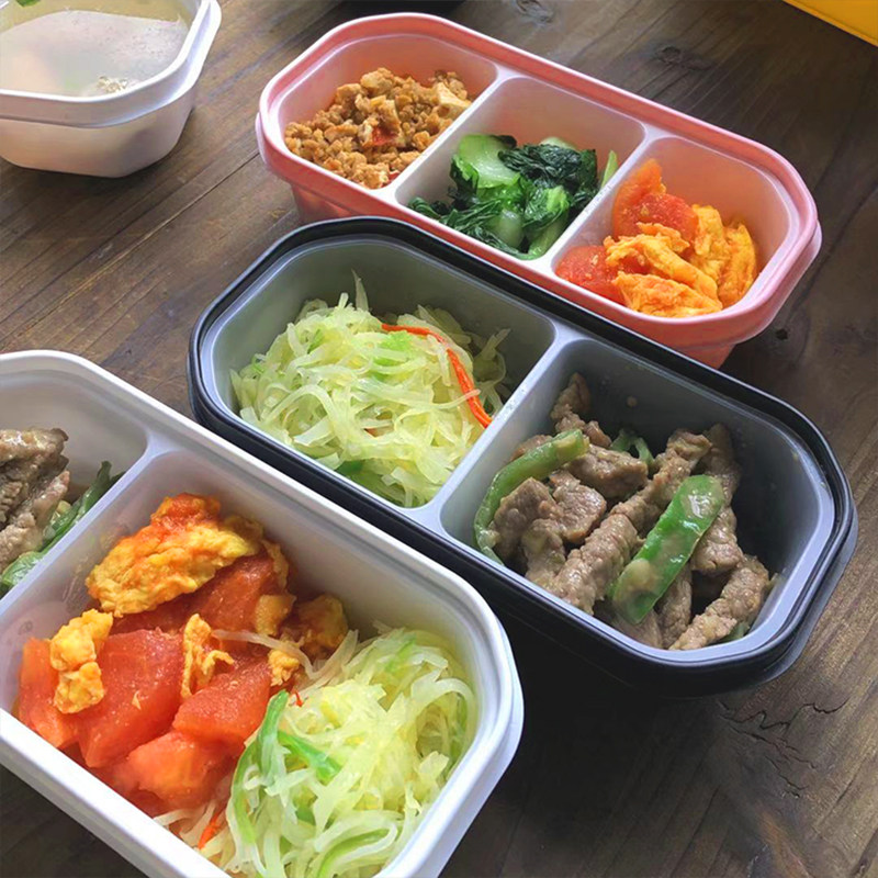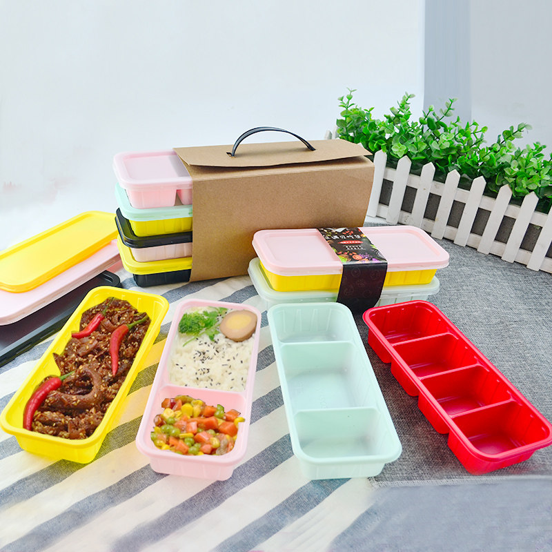Disposable lunch box packaging box divided into two compartments color double-layer packaging box single three compartment degradable business fast food box