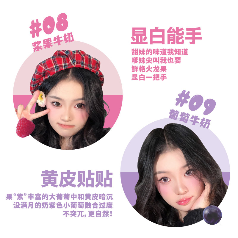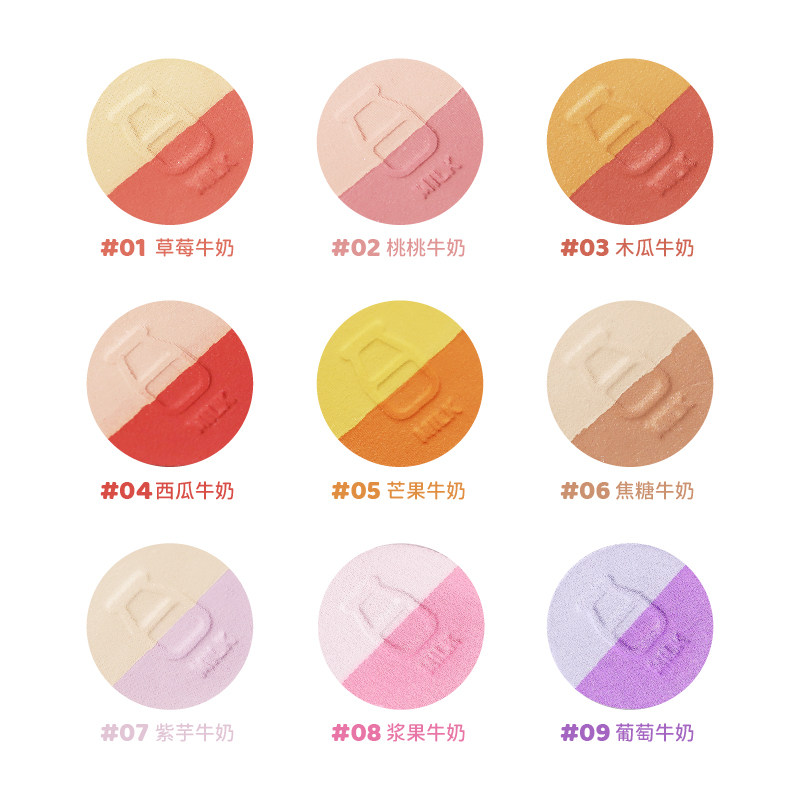 ---------⭐The following is milk series two-color blush ⭐ --------- #01 Strawberry Milk #02 Peach Milk #03 Papaya Milk