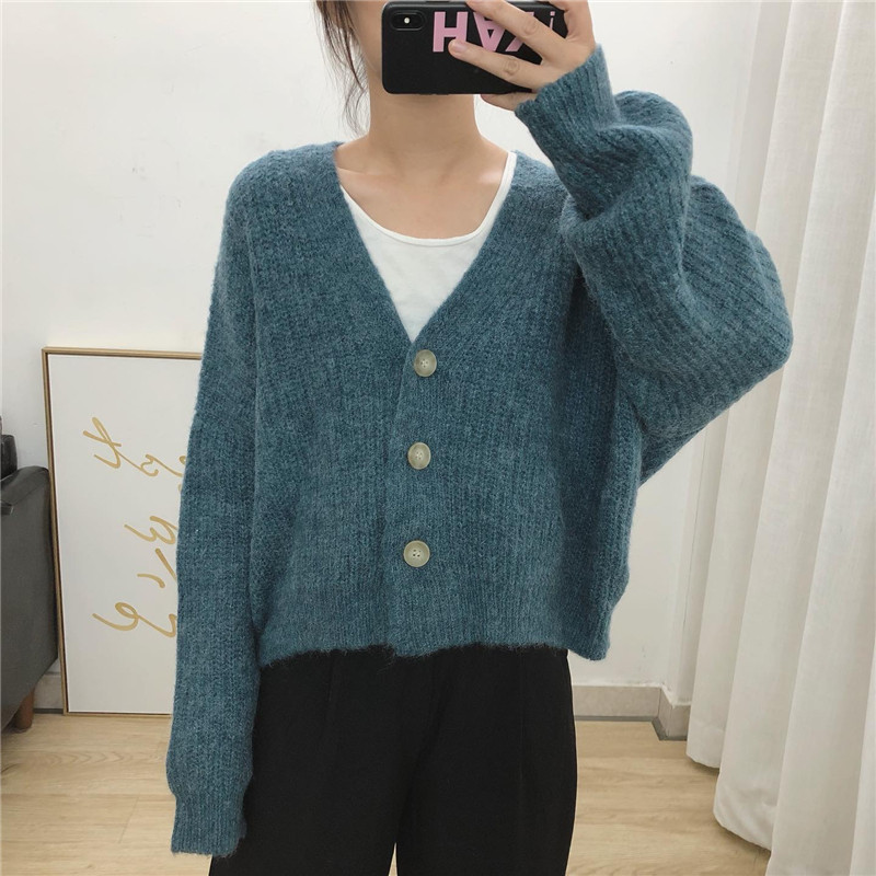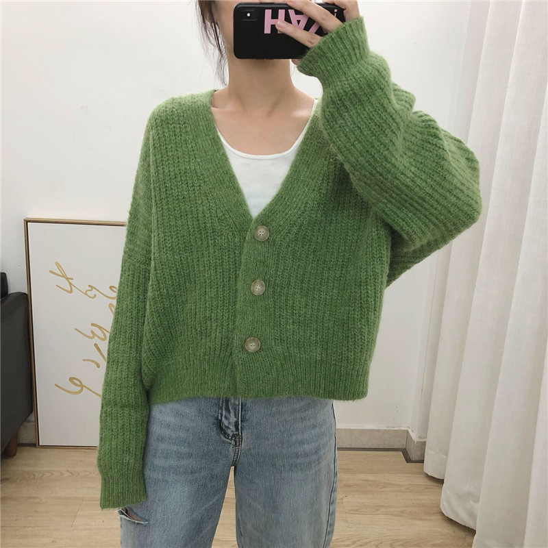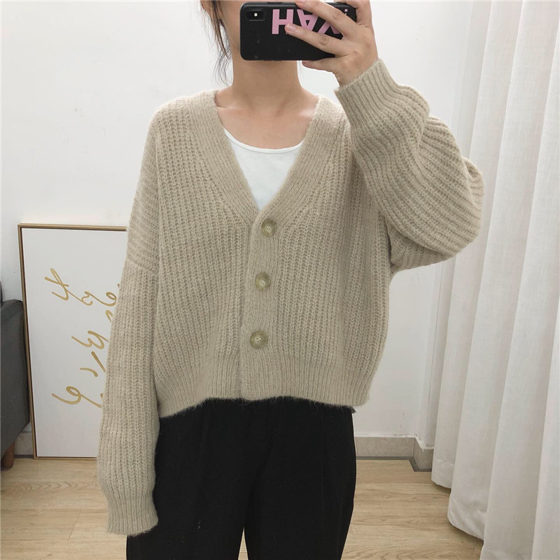Lazy Wind shorts knit cardiovert 2022 spring autumn new Korean version casual loose sweaters slim sweater