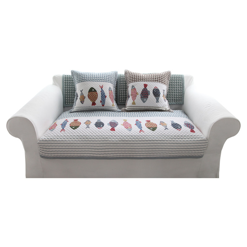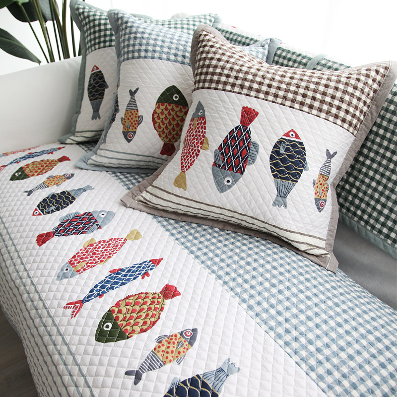Nice fish pure cotton cloth Sofa Cushion Day Style Washed Cotton Plaid Sofa Cover Towel Cushion Cartoon Floating Window Cushion Ground Mat