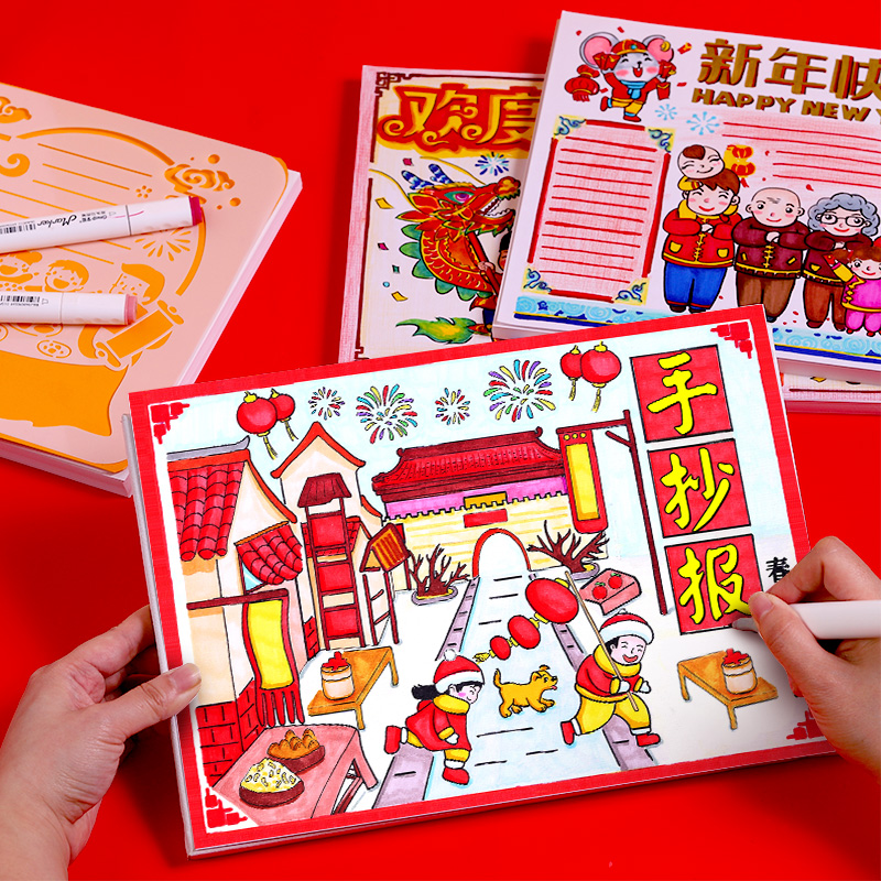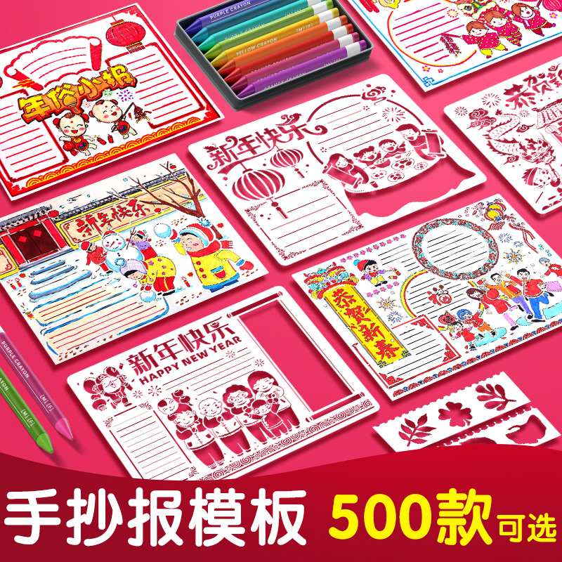 Campus hand copy newspaper template artifact soft ruler for primary school students special school board newspaper painting template hollow a4 hand drawing pattern a3 semi-finished reading festival first grade 8k tabloid universal set