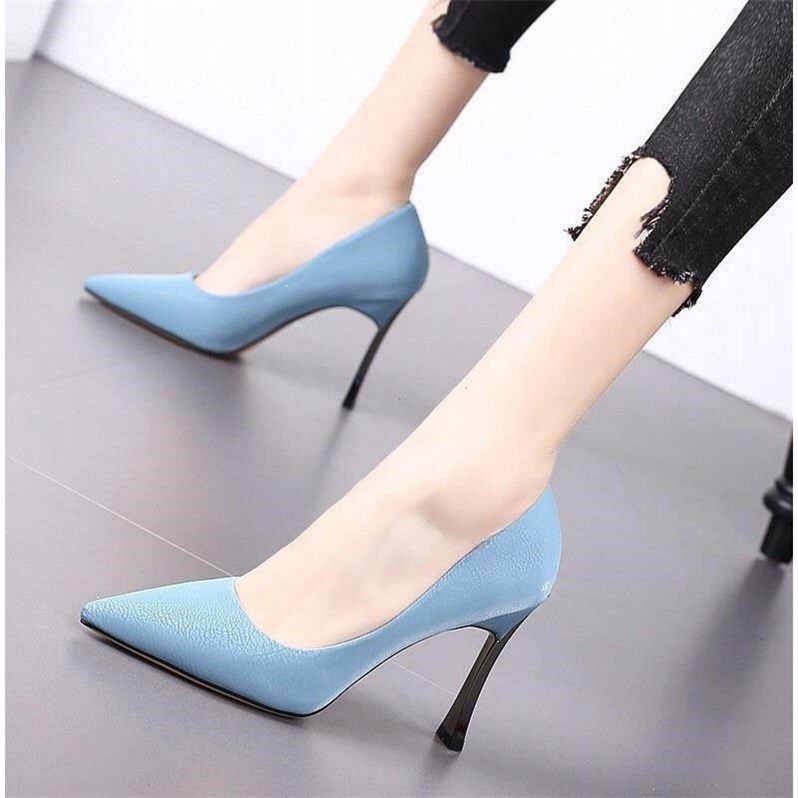 High heel shoes 2019 Korean version Spring new custard metal fine heels Shoes Shallow Mouth Sexy Black Single Shoes