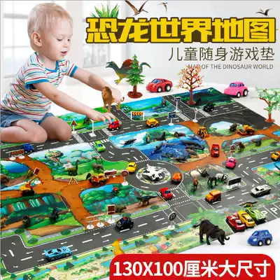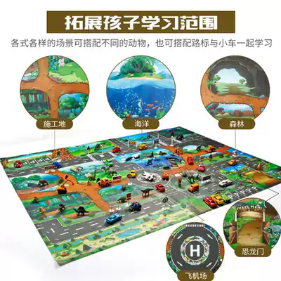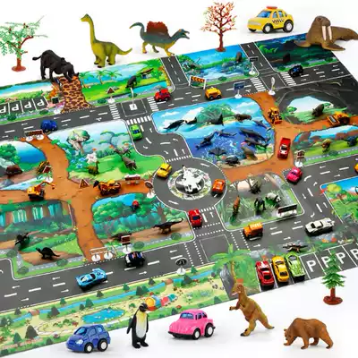 Dinosaur map 18 road signs 3 dinosaurs 1 3*1 meter city map 18 road signs dinosaur base map 18 road signs 6 dinosaur scene Volcano Model 5cm back force car