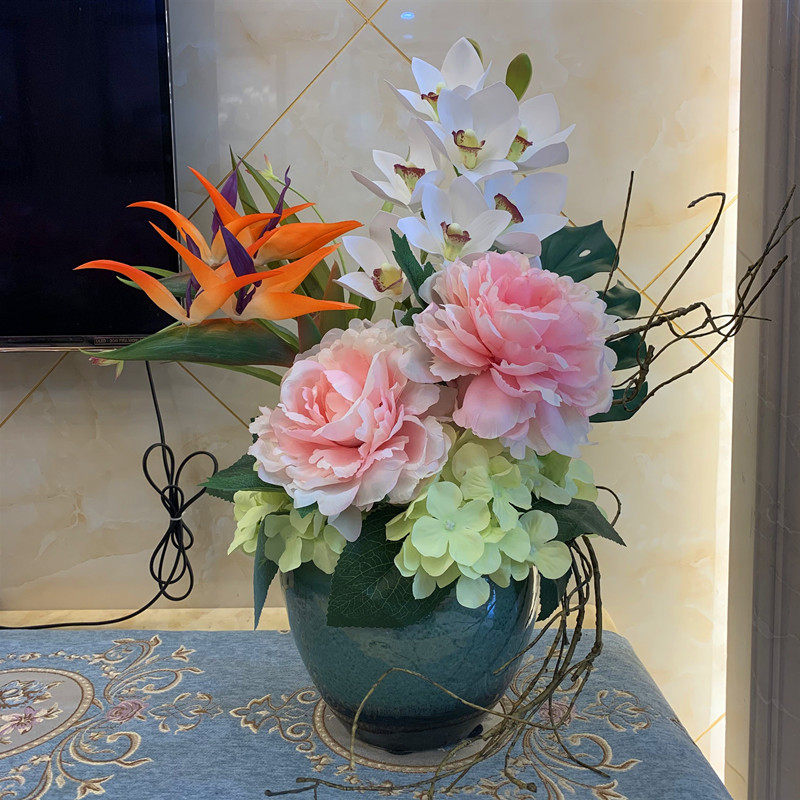 Ceramic small flower pot simulation flower suit fake flower living-room drying flower floral flower art flower arrangement hotel front tea table Xuanguan pendulum piece