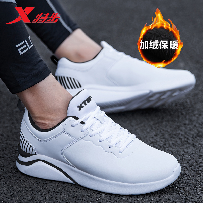 Special step men's shoes casual shoes 2021 Winter New plus velvet warm leather waterproof black running shoes sports shoes