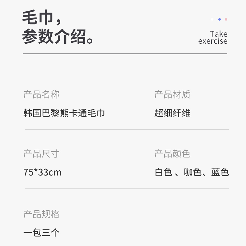 3 strips of Korean pure cotton towel eco-friendly Parisian bear cartoon dry cleaning face dry hair towel plant dyeing softness and fine