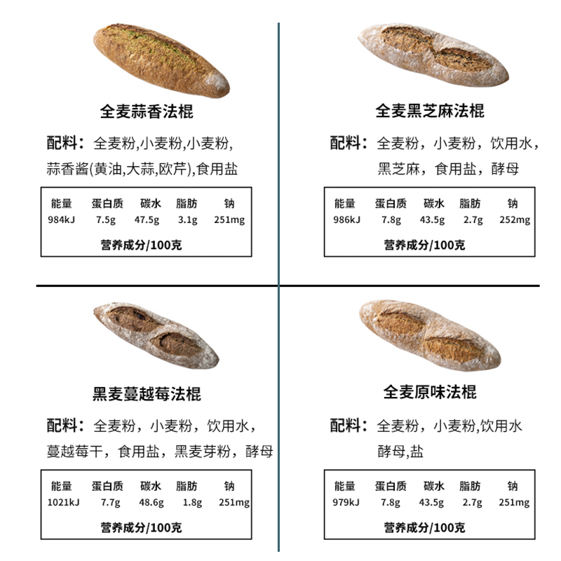 Store enterprise wholesale private chat customer service 1 Whole wheat garlic baguette 200g(232 kcal 100g) 2 whole wheat original baguette 200g(220 kcal 100g