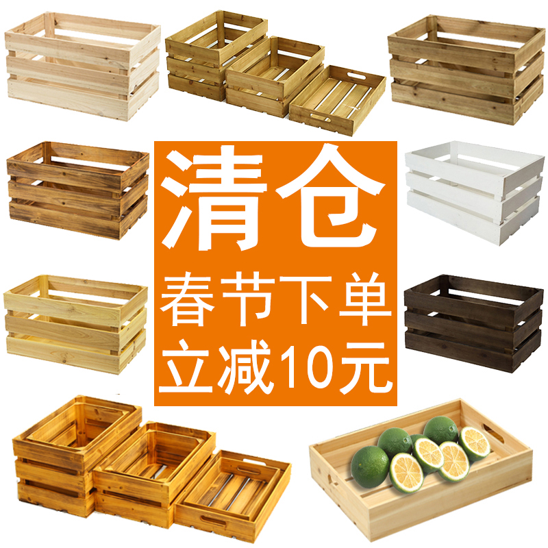 Solid wood storage box Supermarket display wooden box storage decorative fruit wooden basket Wooden box Retro wooden box customization