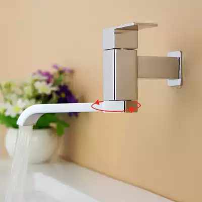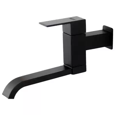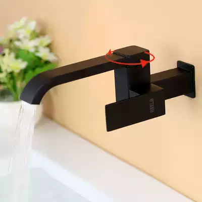 Square black extended mop pool faucet single cold rotatable wall into wall cosmetic room copper wash basin balcony