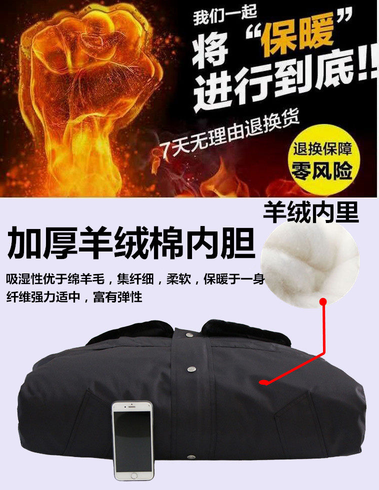 Military Uniform Coat Men's Winter Thickening Medium Long Version Security Multifunction Cashmere Cotton Big Clothes Cold Storage Labor work Anti-cold clothes