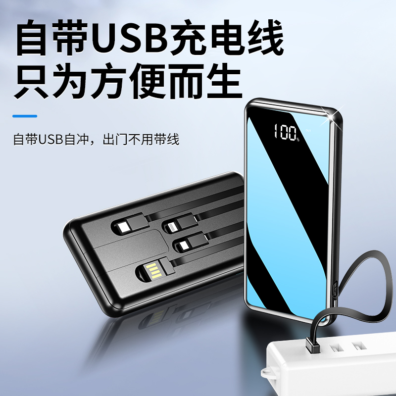 20000 mAh bring your own line mobile charging large capacity ultra-thin small portable action power magnetic attraction wireless suitable for Xiaomi Apple Huawei mobile phone special fast charge 1000000 super large