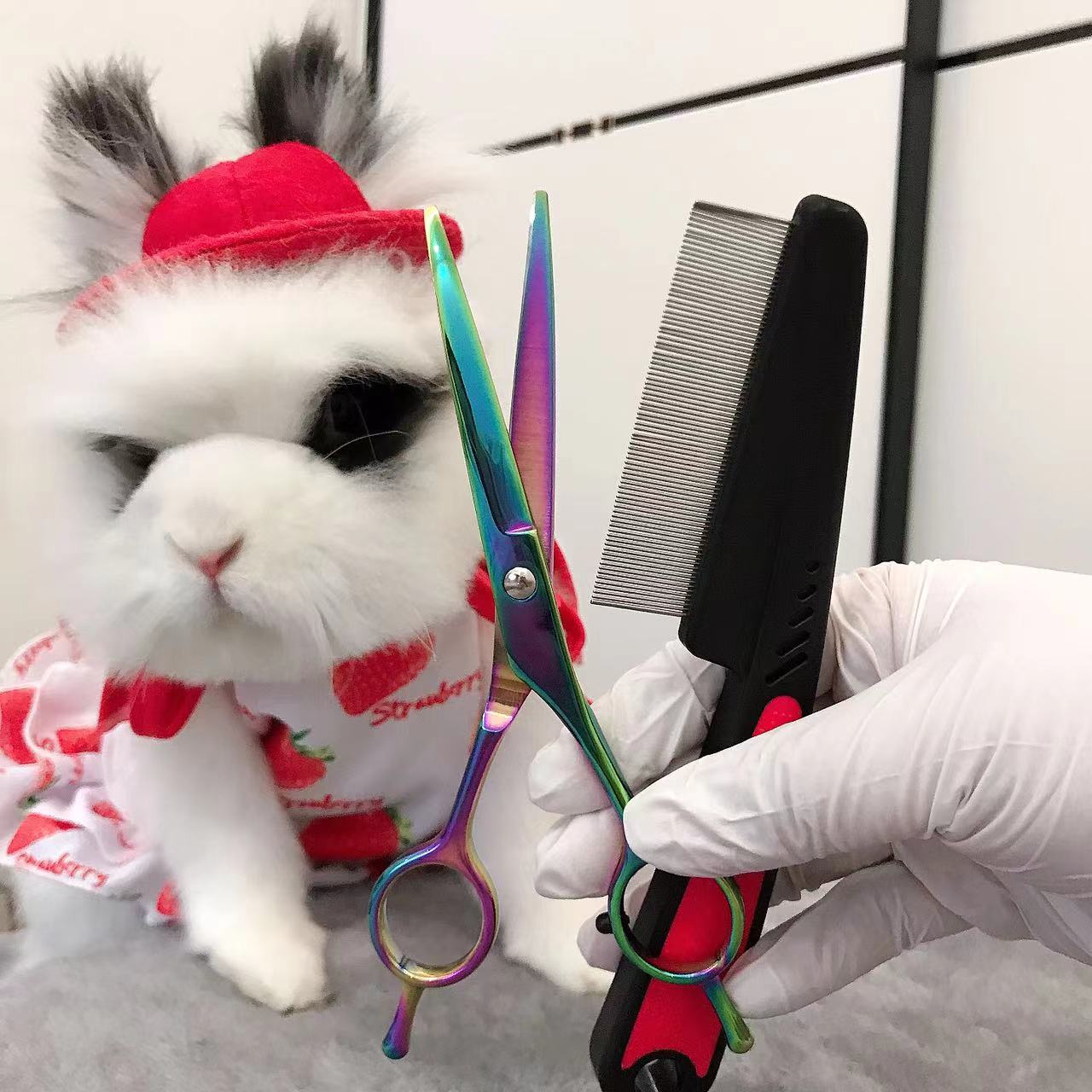 Pet Rabbit Trimming Scissors Net Red Rabbit Style Scissors Comb Blush Long Hair Curved Shear Beauty Kuaishou Big Bear