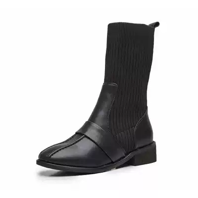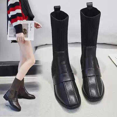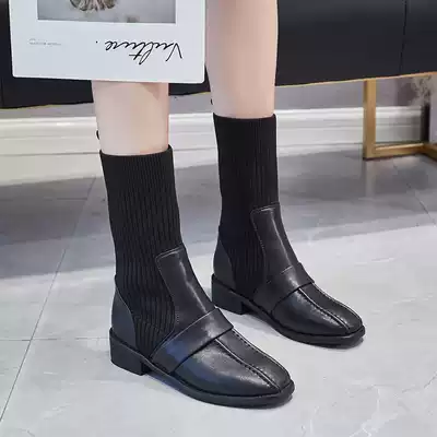 Martin boots female tide ins Net red wild new slim short boots 2021 autumn British wind thick heel elastic socks boots