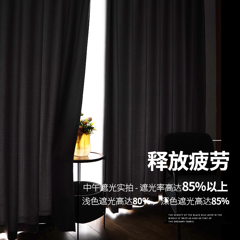 New Nordic modern minimalist grid pure colour thickened environmentally-friendly full shading cloth curtain living room bedroom finished product customization