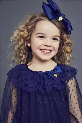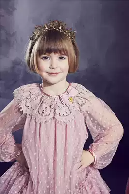 Dad's home spot Angels face girl Super Princess lace dot long sleeve dress 77