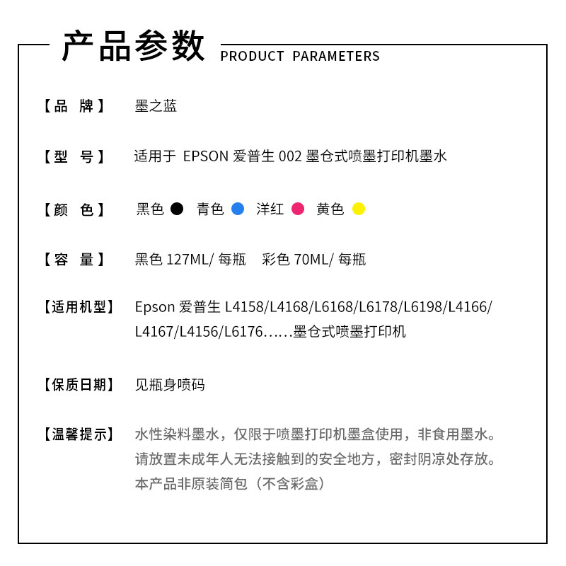 The blue of ink is applicable to EP002 ink L4158 L4168 L6168 L6178 L4166 L4156 printer