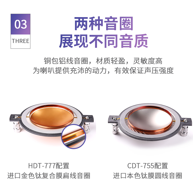 (1) 75-core aluminum cover flat cable (2) 75-core aluminum cover flat cable (3) DT-F747 Budweiser 75-core tweeter (4) HDT-777 Budweiser flagship 75-core tweeter